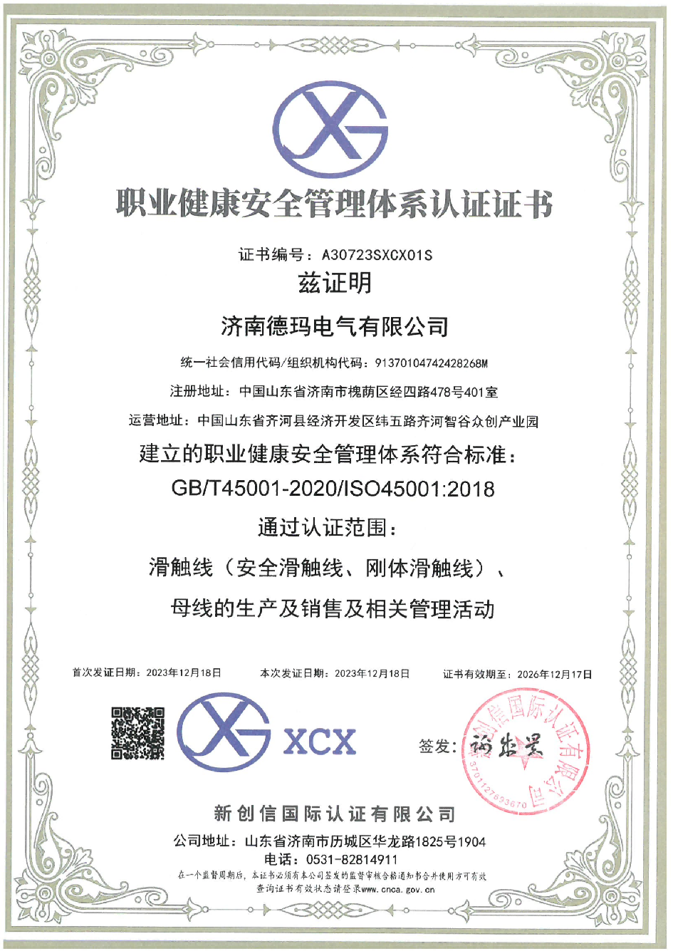 • 職業(yè)健康安全管理體系認(rèn)證證書職業(yè)健康安全管理體系認(rèn)證證書