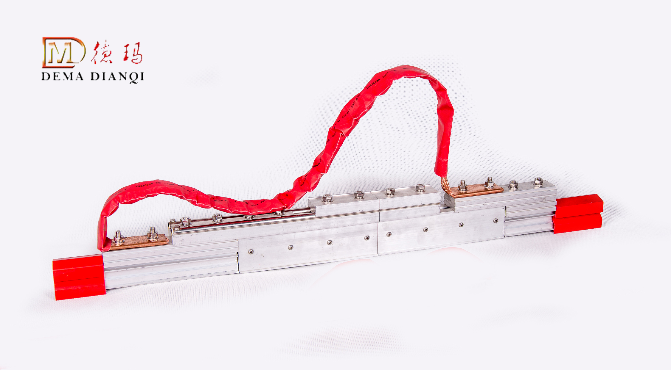 溫度膨脹段裝置采用新型插接式,有效膨脹長(zhǎng)度≥60mm,膨脹段裝置材質(zhì)為T(mén)2銅材質(zhì)或6101A鋁材質(zhì),保證滑觸線導(dǎo)電的需求,膨脹段裝置表面光滑,不會(huì)出現(xiàn)卡滯現(xiàn)象。當(dāng)滑觸線系統(tǒng)長(zhǎng)度超過(guò)150米,推薦設(shè)置膨脹段裝置。